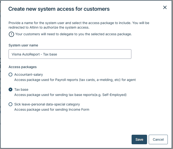 If you need to send different reports that demand different access packages, multiple system accesses for customers needs to be created. More details can be found in the section “How to create multiple system accesses for customers with different access packages”.