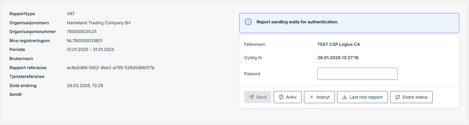 For å se den endelige statusen for innsendingsprosessen, anbefaler vi at du går til vinduet Rapporter (Reports) etter at du har fullført autentiseringsprosessen.