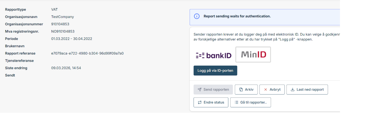 For å sende rapporter til Altinn må du logge inn via ID-porten med din personlige MinID eller BankID.