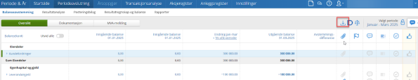 Fra Balanseavstemming - Oversikt kan du nå generere og laste ned all balansedokumentasjon for klienten i en samlet (zip)-fil. Mappen lastes ned lokalt, og inneholder en innholdsfortegnelse for rask tilgang til ønsket vedlegg. Du kan også navigere i mappestrukturen, som er sortert etter kontoer under henholdsvis “Eiendeler” og “Egenkapital og gjeld”.